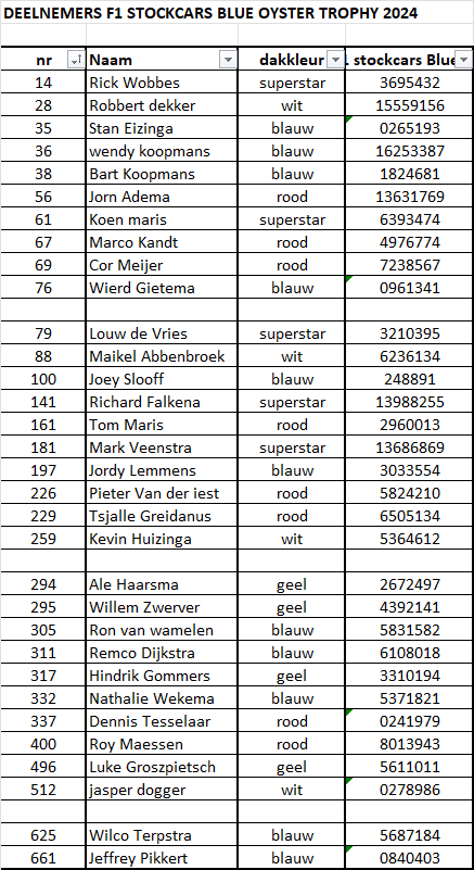 Deelnemerslijsten Unlimited Bangers Blue Oyster 2024