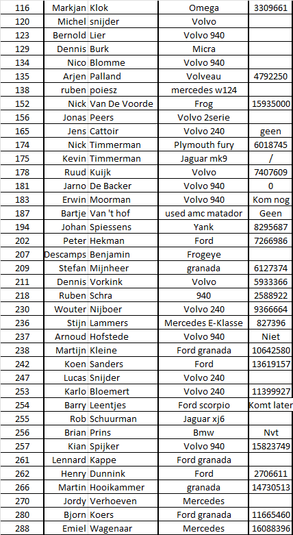 De deelnemerslijsten zijn hier op facebook en online op de websites te vinden!