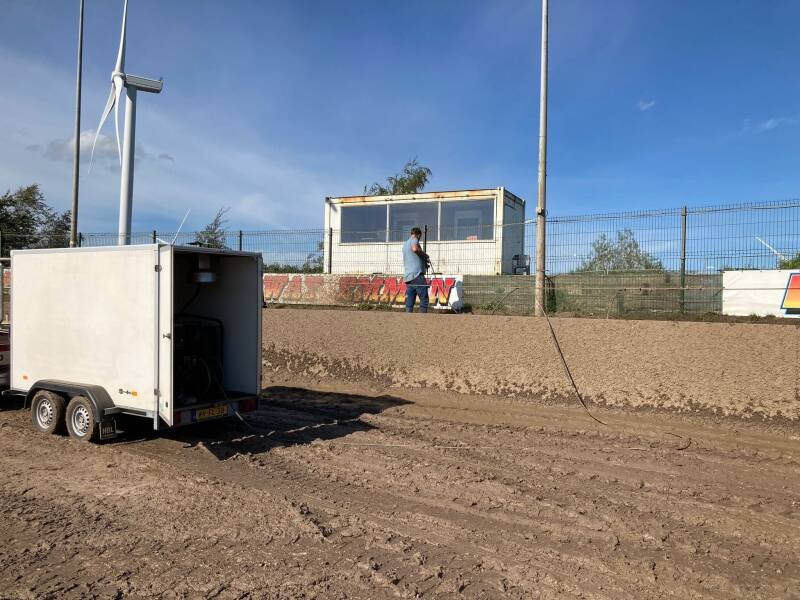 Echter de voorbereidingen voor deze dag vielen letterlijk en figuurlijk in het water. De dagen voorafgaand is er meer als 50mm water gevallen en dat maakte de voorbereidingen er niet makkelijker op. De vooruitzichten voor de zaterdag waren redelijk dus we waren ervan overtuigd dat we een goede baan zouden hebben mits er niet teveel regen zou vallen. In het rennerskwartier stonden echter nog een aantal enorme plassen.