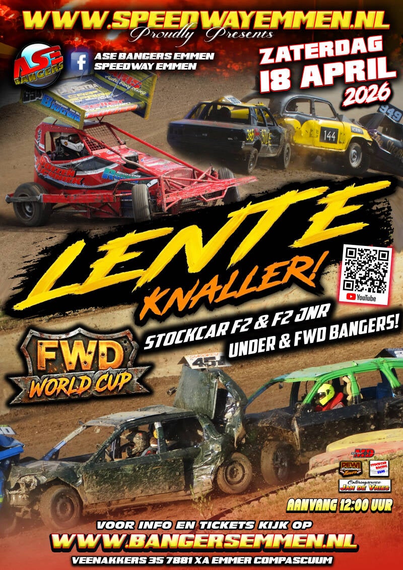 Tijdens de Lenteknaller op zaterdag 18 april 2026 staat Speedway Emmen volledig in het teken van spektakel. Op het programma staan onder meer de Unders, de FWD Bangers, de F2 Senioren en de F2 Junioren. Daarmee belooft het opnieuw een racedag te worden waarop snelheid, lef en entertainment hand in hand gaan.